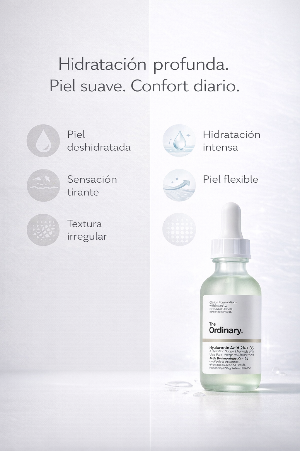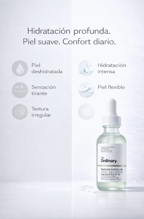 Tu ritual diario de hidratación profunda y cuidado inteligente ¿Piel tirante, apagada o con textura irregular? Este sérum es tu primer paso hacia una piel visiblemente más saludable, fresca y luminosa. La fórmula de The Ordinary está diseñada para algo más que hidratar: enseña a tu piel a retener mejor la humedad, reforzando su equilibrio natural con cada aplicación.