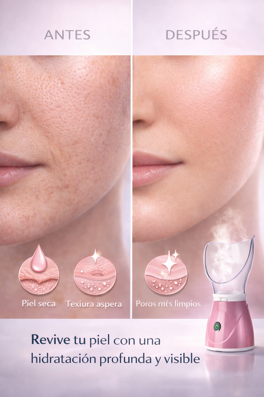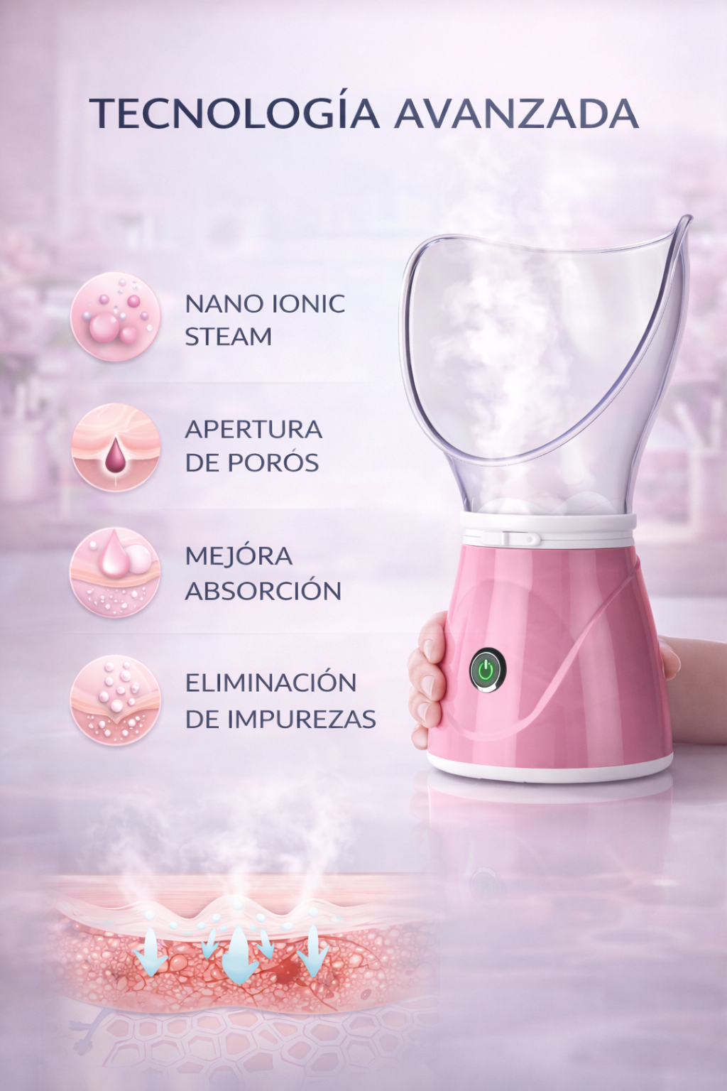 Permite que el vapor llegue a capas más profundas de la piel, mejorando la hidratación y suavidad.